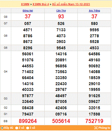 Mời mọi người cùng xem lại kết quả xổ số miền Nam tuần trước ngày 13-12-2023