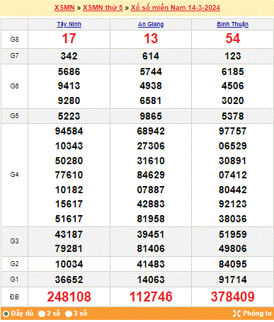 Mời mọi người cùng xem lại kết quả xổ số miền Nam tuần trước ngày 14-03-2024
