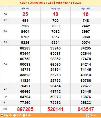 Mời mọi người cùng xem lại kết quả xổ số miền Nam tuần trước ngày 14-05-2024