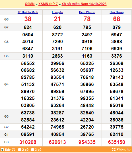 Mời mọi người cùng xem lại kết quả xổ số miền Nam tuần trước ngày 14-10-2023