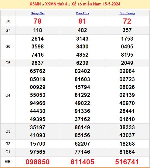 Mời mọi người cùng xem lại kết quả xổ số miền Nam tuần trước ngày 15-05-2024