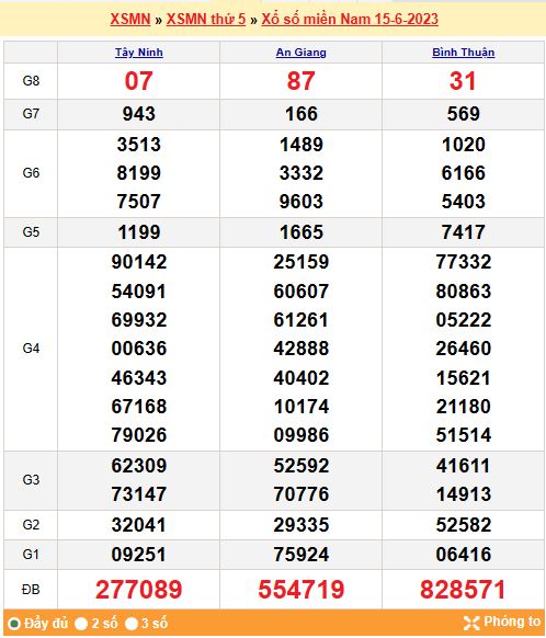 Mời mọi người cùng xem lại kết quả xổ số miền Nam tuần trước ngày 15-06-2023