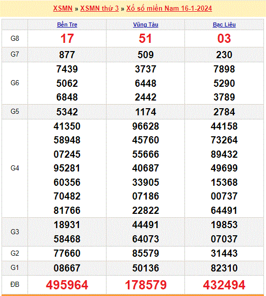 Mời mọi người cùng xem lại kết quả xổ số miền Nam tuần trước ngày 16-01-2024