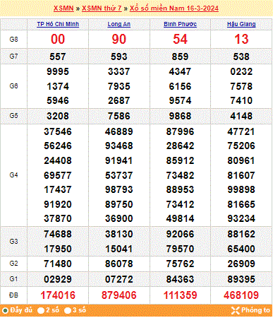 Mời mọi người cùng xem lại kết quả xổ số miền Nam tuần trước ngày 16-03-2024