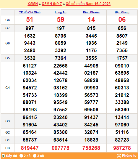 Mời mọi người cùng xem lại kết quả xổ số miền Nam tuần trước ngày 16-09-2023
