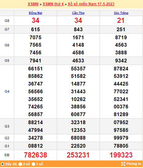 Mời mọi người cùng xem lại kết quả xổ số miền Nam tuần trước ngày 17-05-2023