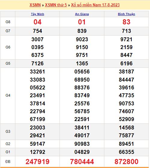 Mời mọi người cùng xem lại kết quả xổ số miền Nam tuần trước ngày 17-08-2023
