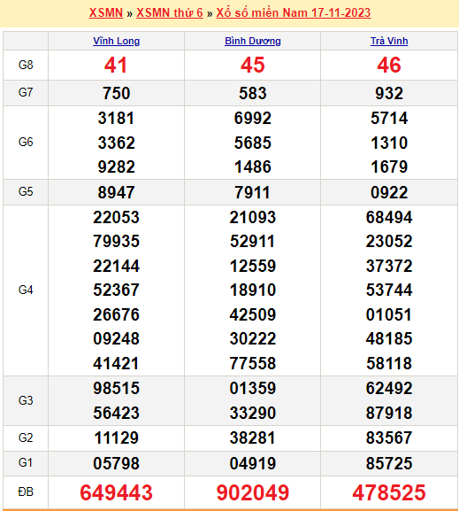 Mời mọi người cùng xem lại kết quả xổ số miền Nam tuần trước ngày 17-11-2023