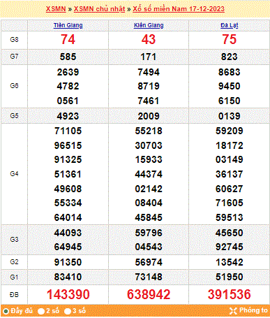 Mời mọi người cùng xem lại kết quả xổ số miền Nam tuần trước ngày 17-12-2023