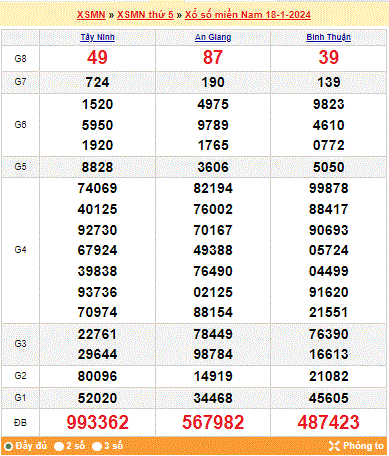 Mời mọi người cùng xem lại kết quả xổ số miền Nam tuần trước ngày 18-01-2024