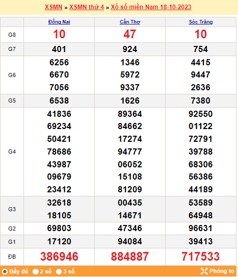 Mời mọi người cùng xem lại kết quả xổ số miền Nam tuần trước ngày 18-10-2023