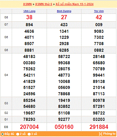 Mời mọi người cùng xem lại kết quả xổ số miền Nam tuần trước ngày 19-01-2024