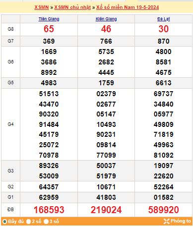 Mời mọi người cùng xem lại kết quả xổ số miền Nam tuần trước ngày 19-05-2024