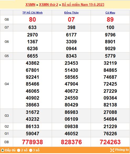 Mời mọi người cùng xem lại kết quả xổ số miền Nam tuần trước ngày 19-06-2023
