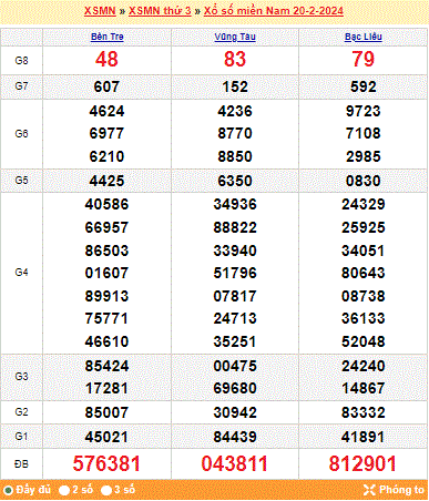 Mời mọi người cùng xem lại kết quả xổ số miền Nam tuần trước ngày 20-02-2024