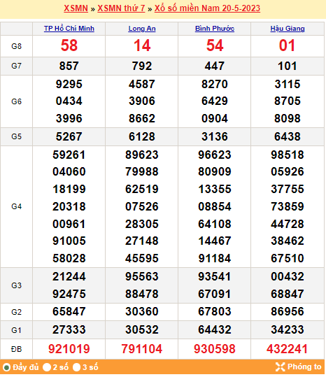 Mời mọi người cùng xem lại kết quả xổ số miền Nam tuần trước ngày 20-05-2023