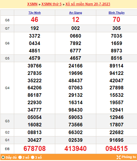 Mời mọi người cùng xem lại kết quả xổ số miền Nam tuần trước ngày 20-07-2023