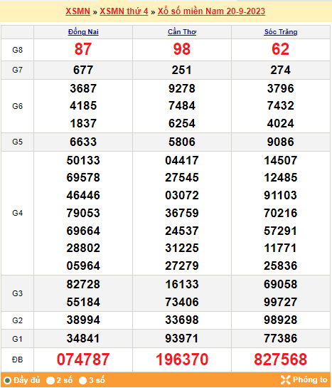 Mời mọi người cùng xem lại kết quả xổ số miền Nam tuần trước ngày 20-09-2023