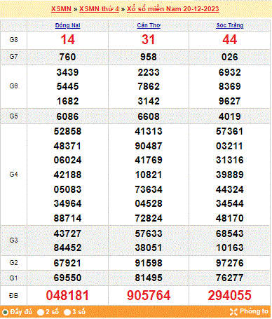 Mời mọi người cùng xem lại kết quả xổ số miền Nam tuần trước ngày 20-12-2023