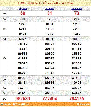 Mời mọi người cùng xem lại kết quả xổ số miền Nam tuần trước ngày 22-02-2024