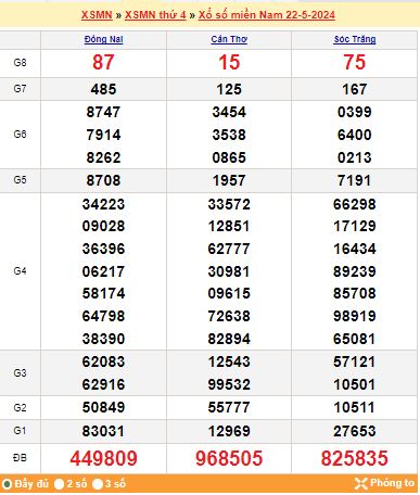 Mời mọi người cùng xem lại kết quả xổ số miền Nam tuần trước ngày 22-05-2024