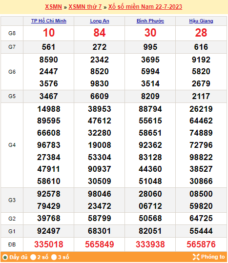 Mời mọi người cùng xem lại kết quả xổ số miền Nam tuần trước ngày 22-07-2023