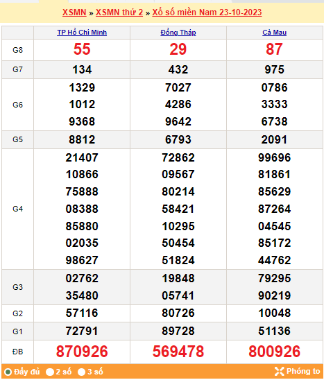 Mời mọi người cùng xem lại kết quả xổ số miền Nam tuần trước ngày 23-10-2023