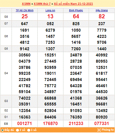 Mời mọi người cùng xem lại kết quả xổ số miền Nam tuần trước ngày 23-12-2023