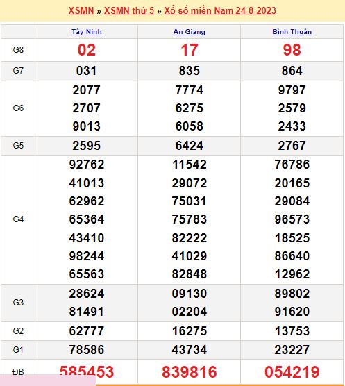 Mời mọi người cùng xem lại kết quả xổ số miền Nam tuần trước ngày 24-08-2023