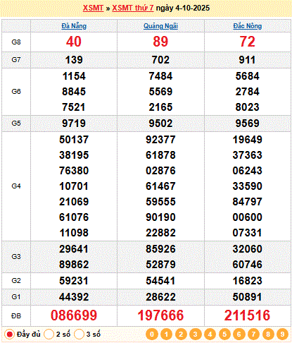 - Soi cầu đặc biệt Đắc Nông: 2,0