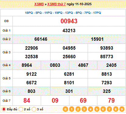 Xem lại kết quả XSMB ngày hôm trước 11-10-2025