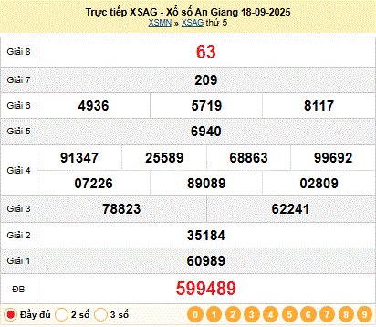 Kết quả xổ số An Giang XSAG 18-09-2025