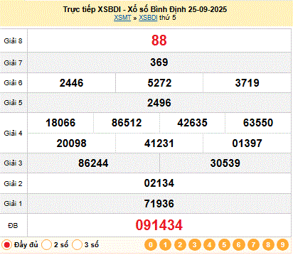 Kết quả xổ số Bình Định XSBDI 25-09-2025