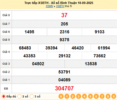 Kết quả xổ số Bình Thuận XSBTH 18-09-2025