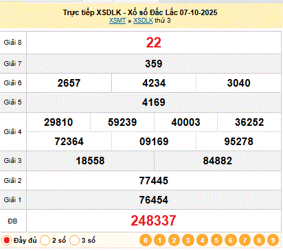 Kết quả xổ số Đắc Lắc XSDLK 07-10-2025