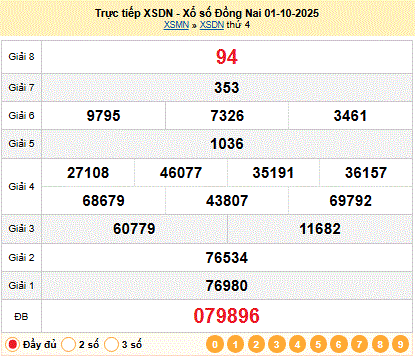 Kết quả xổ số Đồng Nai XSDN 01-10-2025
