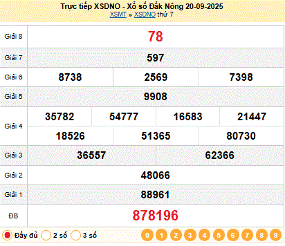 Kết quả xổ số Đắk Nông XSDNO 20-09-2025