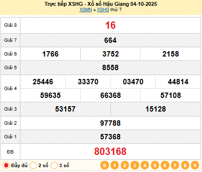 Kết quả xổ số Hậu Giang XSHG 04-10-2025