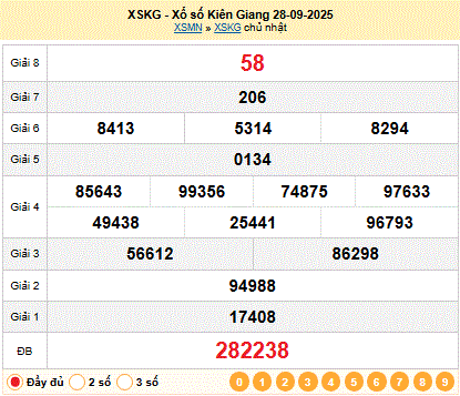 Kết quả xổ số Kiên Giang XSKG 28-09-2025