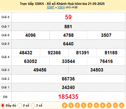 Kết quả xổ số Khánh Hòa XSKH 17-09-2025