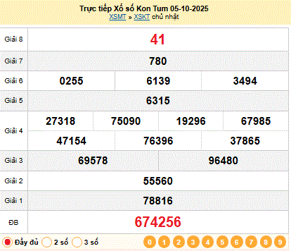 Kết quả xổ số Kon Tum XSKT 05-10-2025