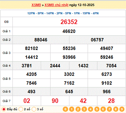 Kết quả xổ số miền Bắc ngày 12-09-2025: