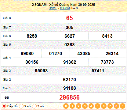 Kết quả xổ số Quảng Nam XSQNM 30-09-2025