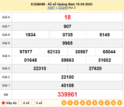Kết quả xổ số Quảng Nam XSQNM 16-09-2025