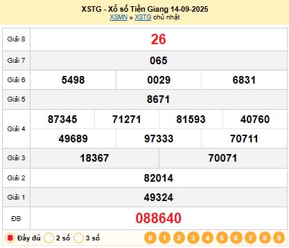 Kết quả xổ số Tiền Giang XSTG 14-09-2025
