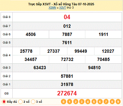 Kết quả xổ số Vũng Tàu XSVT 07-10-2025