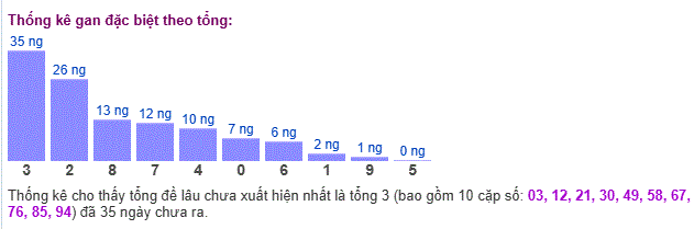 Thống kê gan giải đặc biệt miền Bắc theo tổng