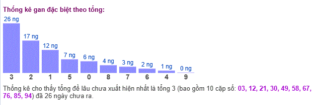 Thống kê gan giải đặc biệt miền Bắc theo tổng