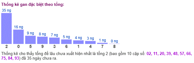 Thống kê gan giải đặc biệt miền Bắc theo tổng